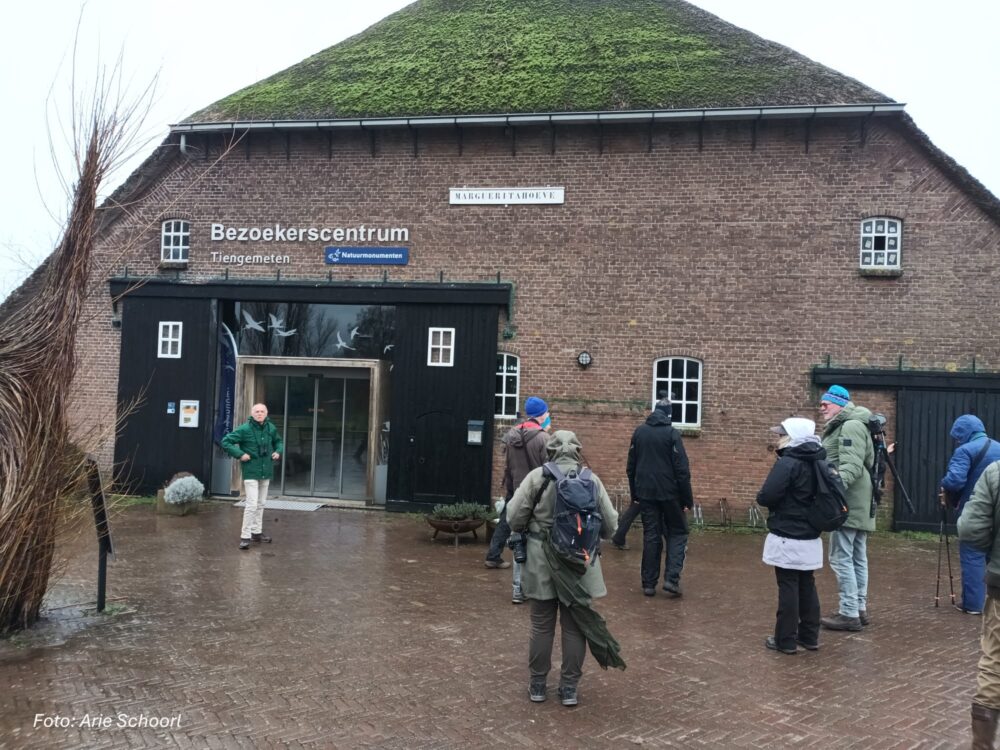 Het is 22 februari en om half 8 vertrekt in de stromende regen een groep enthousiaste Tringa-vogelaars richting Tiengemeten. We gaan met de pont over. Op stap met een gids van Natuurmonumenten, die van alles over het eiland vertelt, zoals over de vroegere eigenaren, de bewoning, de agrarische achtergrond en de watersnoodramp. En uiteraard over de vogels, de bevers, de reeën en de vos. Er staat een harde wind en het regent van tijd tot tijd flink, maar dat mag de pret niet drukken. We zien de rosse stekelstaart, nonnetjes en veel andere eenden. Over de rietlanden cirkelen enkele bruine kiekendieven. Ook de buizerd en torenvalk zijn van de partij. Achter wat bosjes trotseren dappere konikspaarden met de bips naar de wind gericht de regenvlagen. We lopen nu over een drassig graspad en de achterblijvers worden getrakteerd op een laag over het riet vliegende blauwe kiekendief.