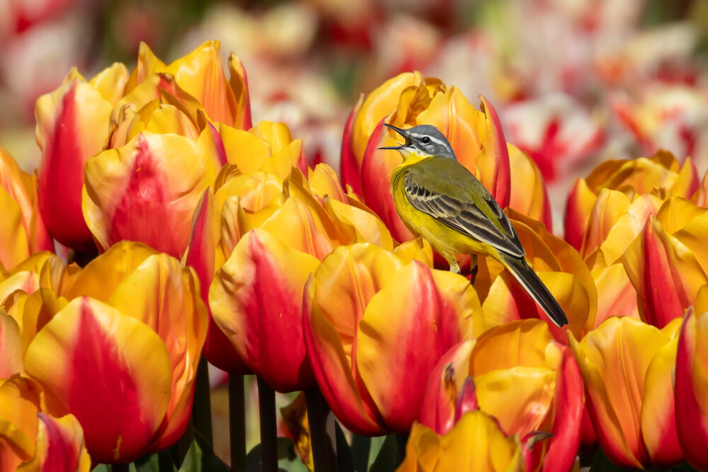 De Gele Kwikstaarten zaten vroeger ook al vaak in bollenland. Nu nog steeds! Deze zat vlak bij de camping de Nollen. Het leverde een kleurrijk plaatje op!