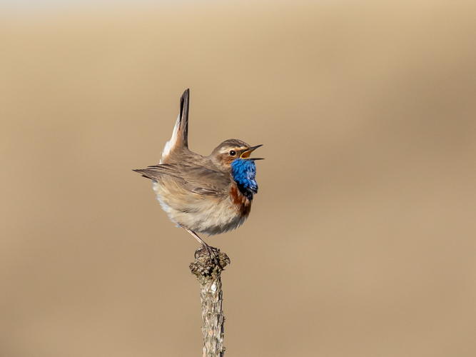 De Barmsijs komt hier ook tot broeden en wordt ook in het Zwanewater waargenomen. De zang is een kenmerkende triller/wekkertje, metaalachtig. Deze had ik in het duingebied van Schoorl, De Kerf. Daar zat ook een Blauwborst te zingen.